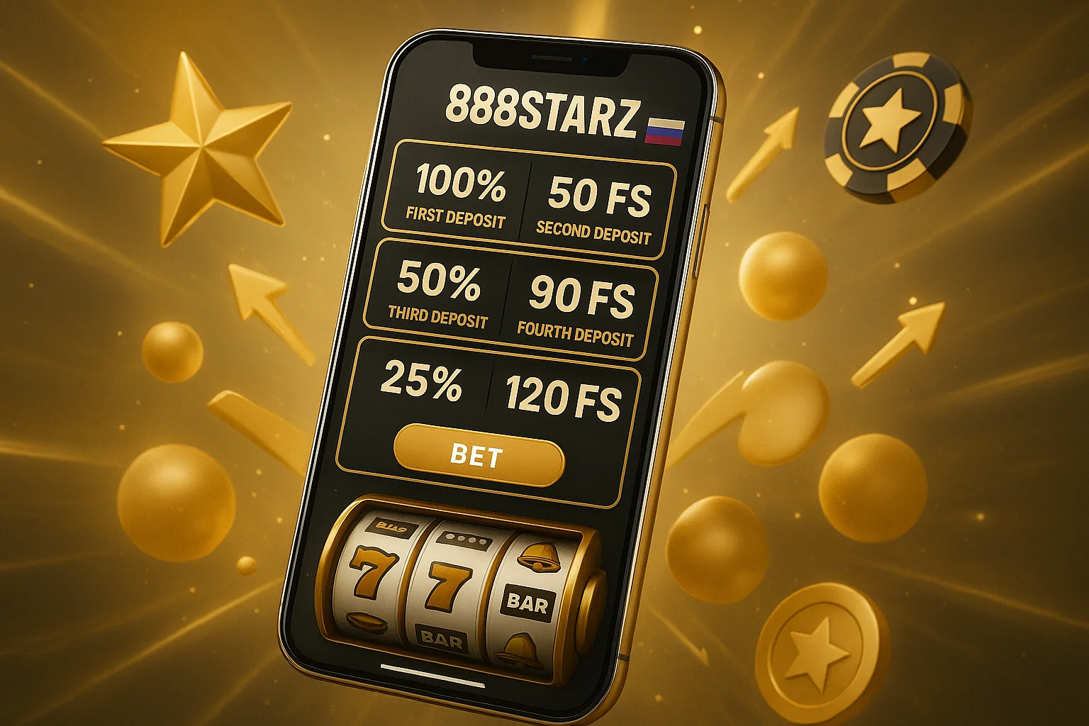 Букмекерская контора 888starz разработала продуманную систему поощрения для клиентов из России, Казахстана, Узбекистана и Беларуси. Структура включает четыре последовательных депозита с постепенно убывающими процентными ставками бонусов, но возрастающим количеством бесплатных вращений.